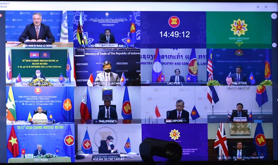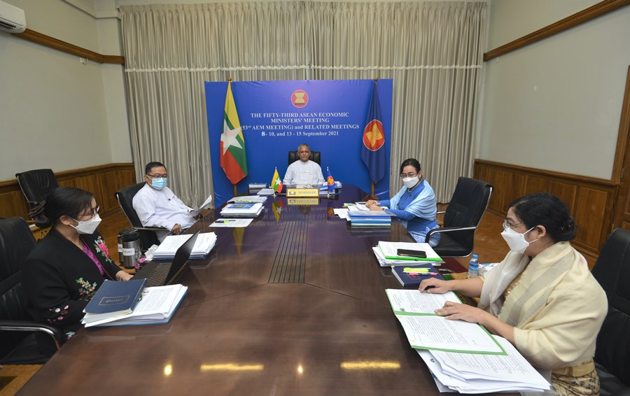 The Union Minister for Investment and Foreign Economic Relations U Aung Naing Oo participated at the second day of the 53rd ASEAN Economic Ministersâ Meeting via video conference on 9th September 2021 from the office of the Ministry of Investment and Foreign Economic Relations.
