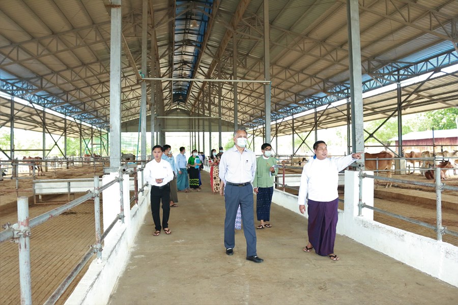 After that , theĀ Union Minister visited the cattle farm ofĀ Good Brother Co., Ltd at Ye Pyae Village ,Ā Myot Thit Township of Magway Region. U Myo Myint Tun, the farm manager presented the current investment activities of the farm and companyās export promotion plan for mid and long term. After hearing the report, the Union Minister informed the investment facilitation and promotion activities being undertaken by government, and encouraged the company to increase the cattle farm investment and also urged to made contract cattle farming with local farmers. During his inspection tour, the Union Minister coordinated and facilitated the necessary requirements of the investors.