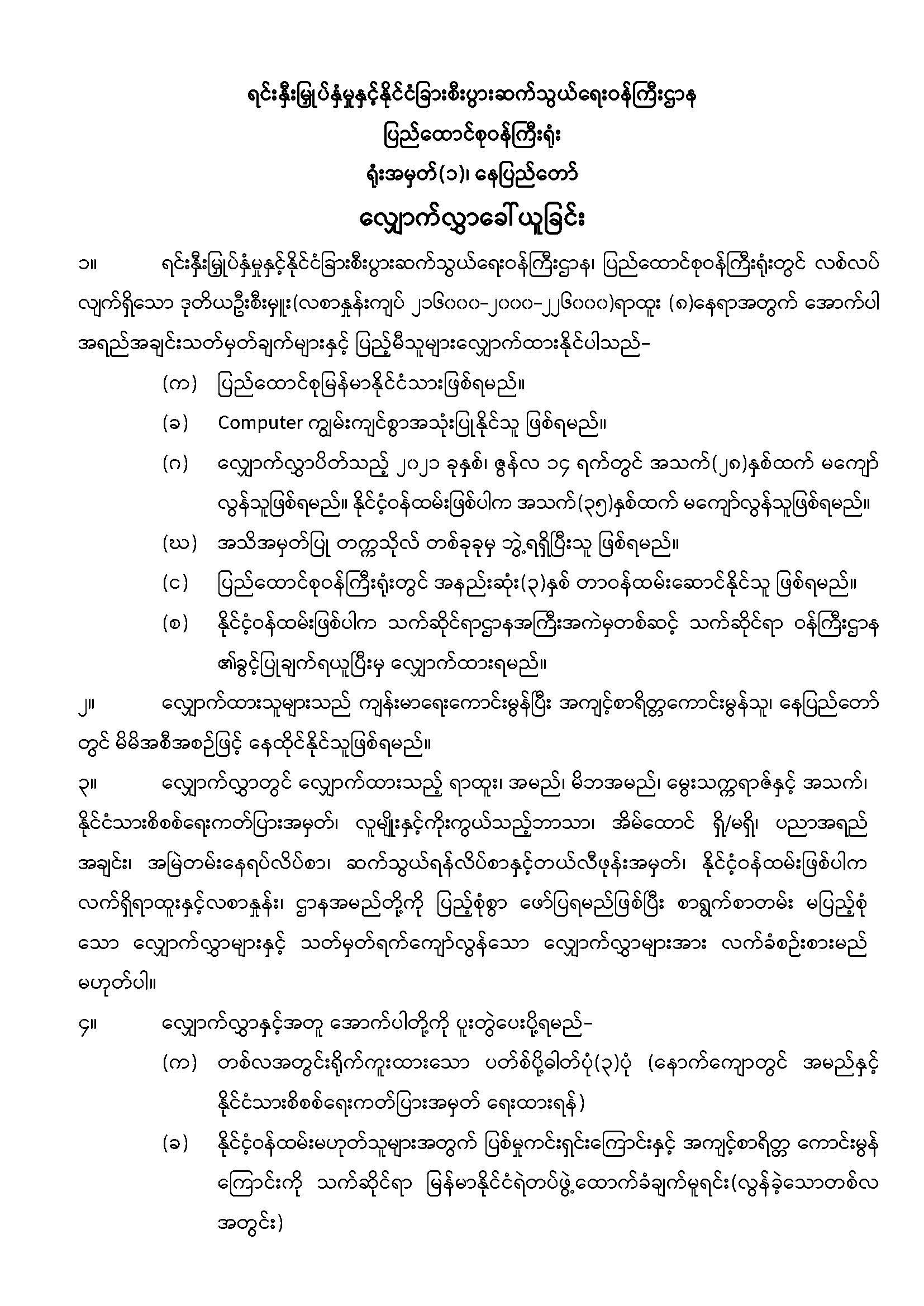 ပြည်ထောင်စုဝန်ကြီးရုံးတွင် လစ်လပ်လျက်ရှိသော အငယ်တန်းစာရေး(၅)နေရာအတွက် ရေးဖြေ ဖြေ... Post on 23 စက်တင်ဘာ 2022