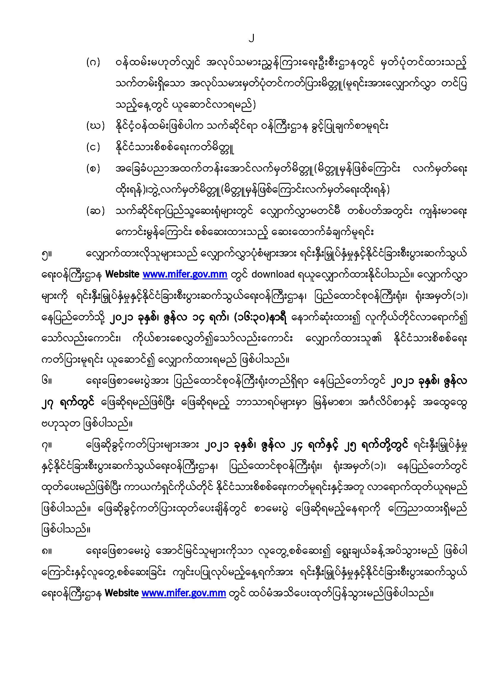 ရင်းနှီးမြှုပ်နှံမှုနှင့် နိုင်ငံခြားစီးပွားဆက်သွယ်ရေးဝန်ကြီးဌာန၊ ပြည်ထောင်စုဝန်ကြီးရုံး၊ ရုံးအမှတ် (၁) ၊ နေပြည်တော်မှ ဝန်ထမ်းလျှောက်လွှာခေါ်ယူခြင်း Post on 14 မေ 2021 Download here >>>>